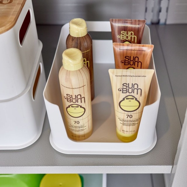 Bærekraft møter oppbevaring med iDesign Eco Recycled Plastic Medium Open-Front bin. Denne